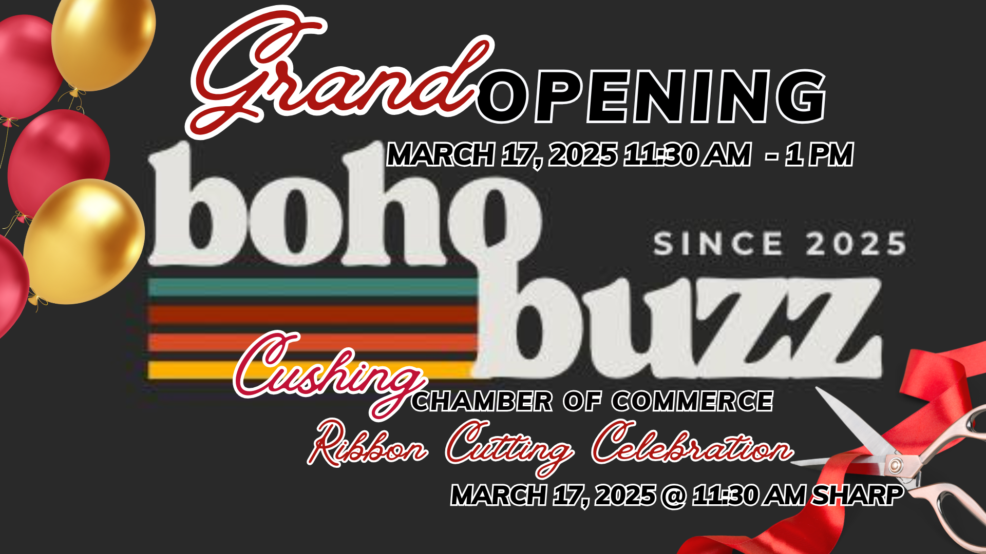 Boho Buzz Grand Opening & Cushing Chamber Ribbon Cutting Celebration 🎀โ๏ธ🎉