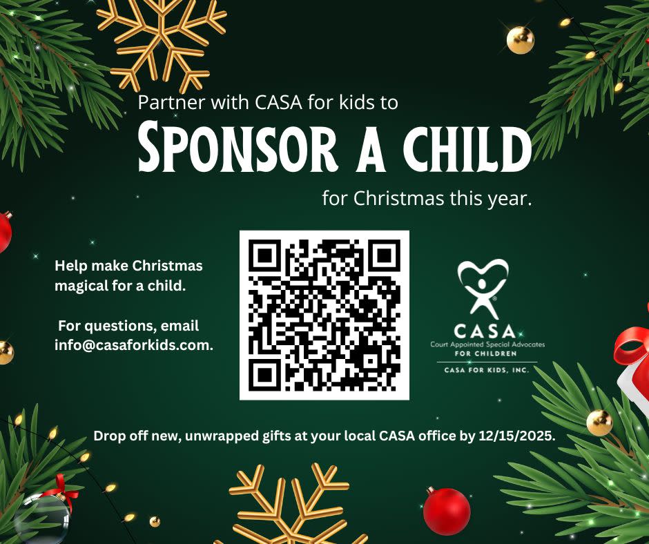 DROP OFF NEW, UNWRAPPED GIFTS AT YOUR LOCAL CASA OFFICE BY 12/15/2025