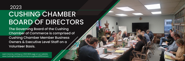 If you are on the Cushing Chamber Board of Directors, this meeting is for YOU! Attendance is Mandatory; please register through this event page.