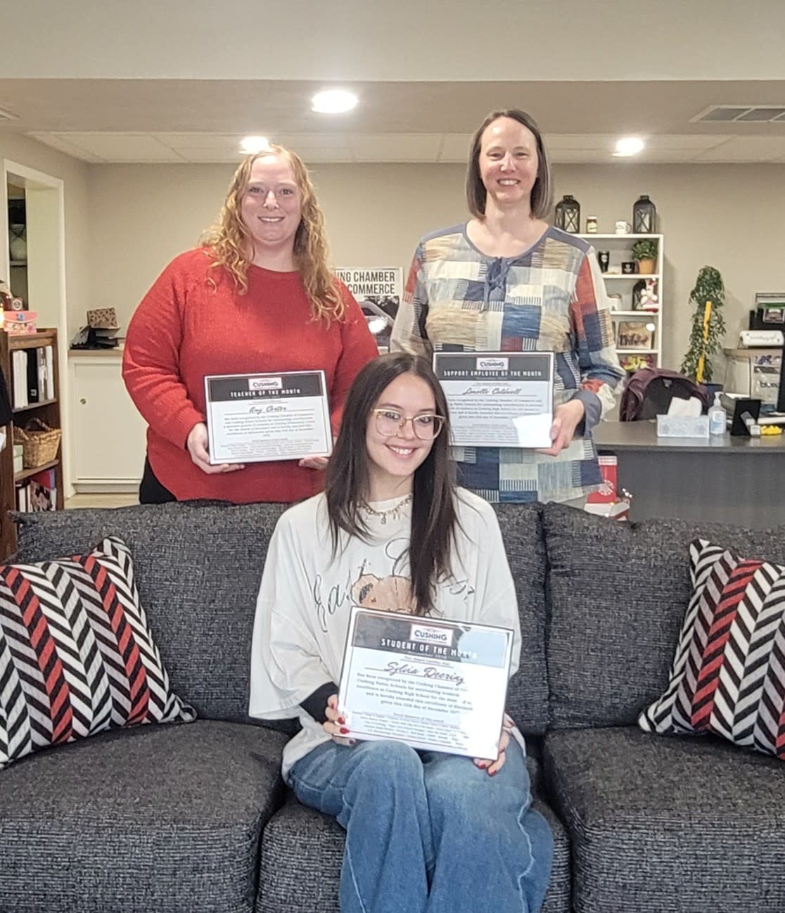 On Oct. 27, Dec. 15, Feb. 23, and April 27, that Cushing Public Schools is in session, we have our Business After School (BAS) Program Receptions with that month's honorees. We honor: 1 Teacher of the Month; 1 Support Staff Person of the Month; and 2 Senior Students of the Month (Boy & Girl). We invite the honorees and their families, friends, and co-workers to the reception. The Cushing Chamber Member businesses sponsor all types of goodies that each honoree receives at the reception, plus a framed "Of The Month" certificate.