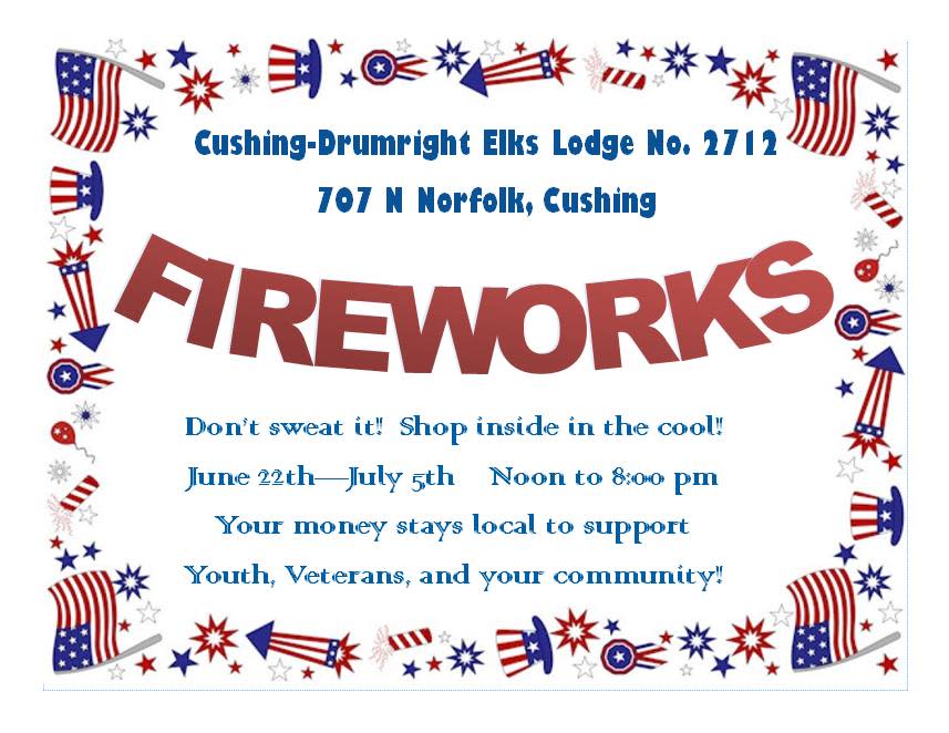 CUSHING - DRUMRIGHT ELKS LODGE ANNUAL FIREWORKS SALE