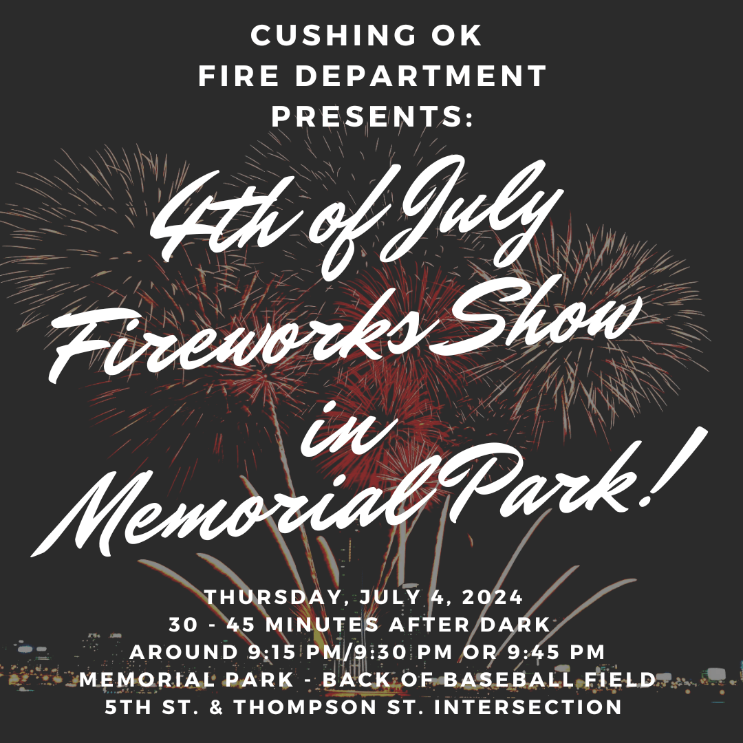 Cushing Fire Dept. Fireworks Show & City of Cushing Aquatic Center updates for July 4, 2024
