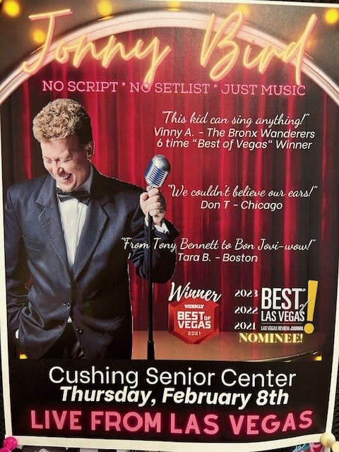 LOOK who's returning to the Cushing Senior Citizens Center, it's Jonny Bird, LIVE from Las Vegas!