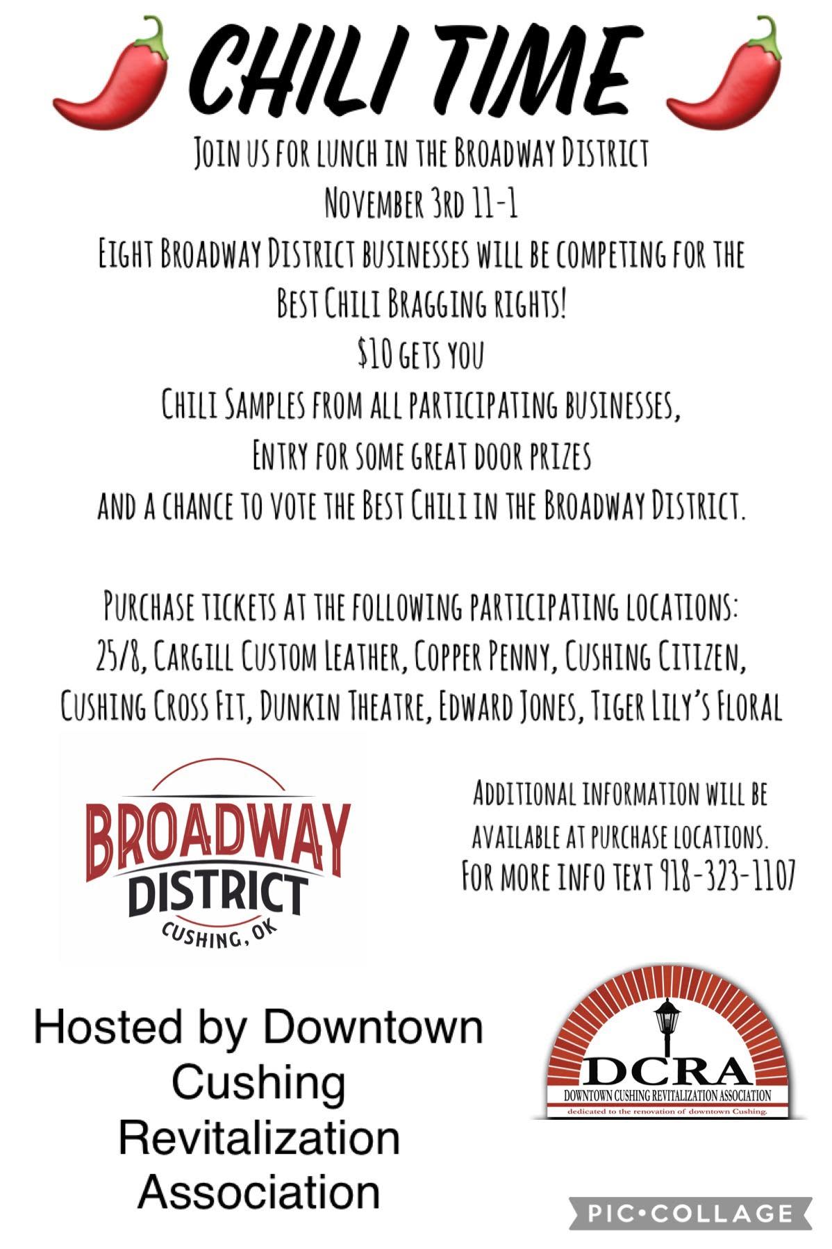 Eight Broadway District Businesses will be competing for the Best Chili Bragging Rights!
