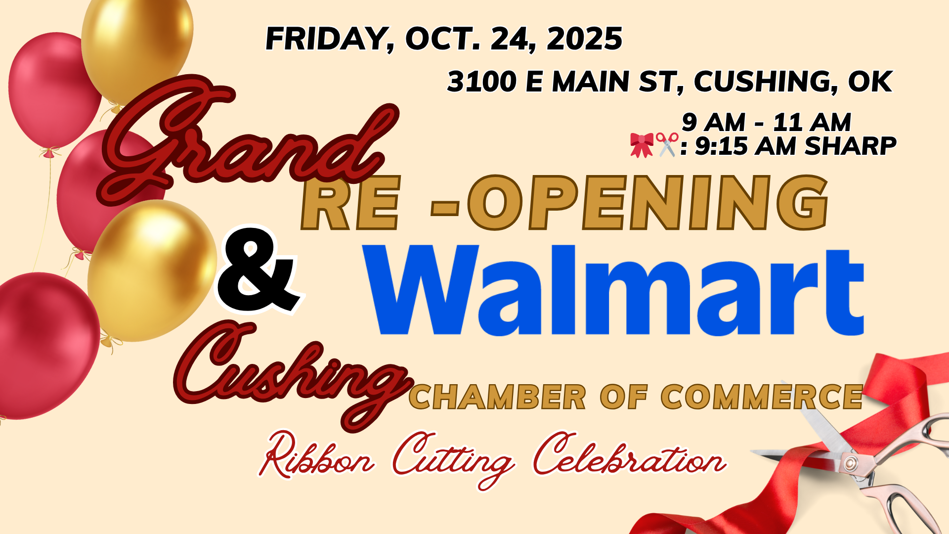 WALMART GRAND RE-OPENING & CUSHING CHAMBER RIBBON CUTTING CELEBRATION🎀✂️