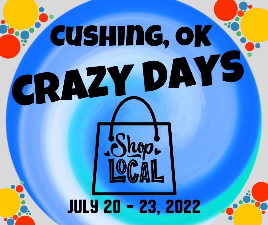Let's have some CRAZY DAYS throughout Cushing, OK! Businesses will be having sales & specials starting July 20 through July 23. Support Local Cushing businesses by shopping LOCAL during CRAZY DAYS!