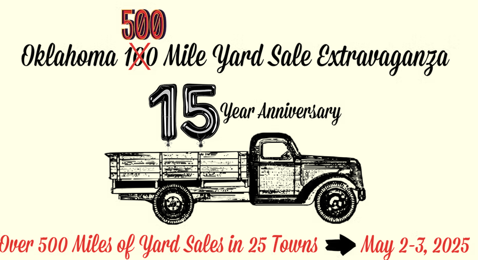 TO POST YOUR GARAGE SALE IN THE 500 MILE YARD SALE, CLICK HERE: OPENS APRIL 1, 2025: http://www.ok500mileyardsale.com.