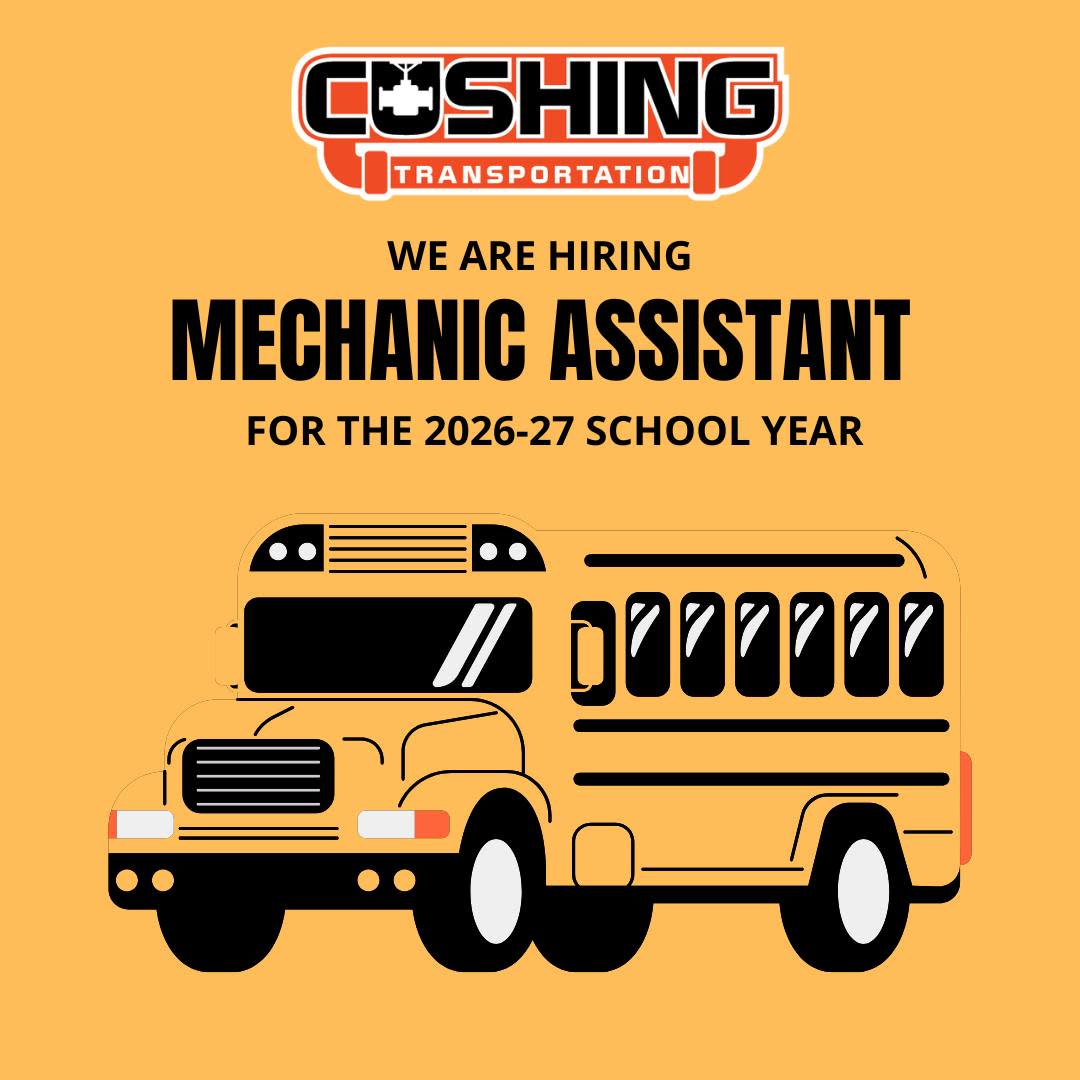 Cushing Public Schools Transportation is currently looking for a Mechanic Assistant, with a start date of July 1, 2026. Join the team that helps keep our Tigers moving! ![]()