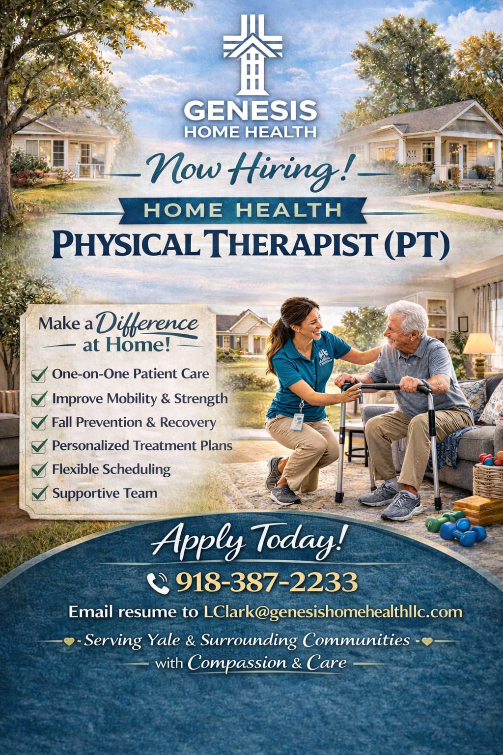 Call 918-387-2233 or email or resume to LClark@genesishomehealthllc.com