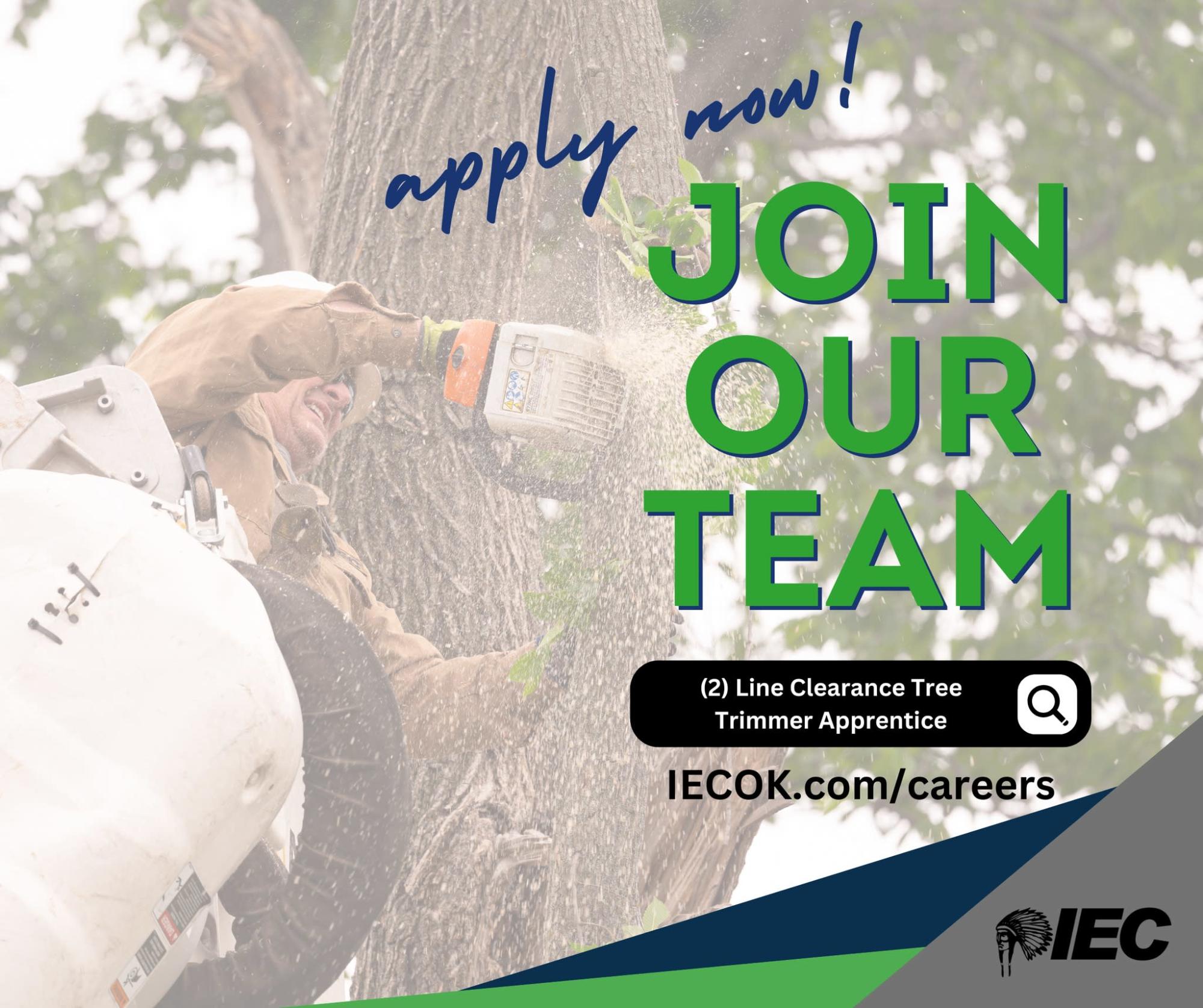 For those interested in applying for the Line Clearance Tree Trimmer Apprentice position out of the Cleveland Office, please submit an application to mlehnus@iecok.com by 5:00PM on December 23rd, 2025.