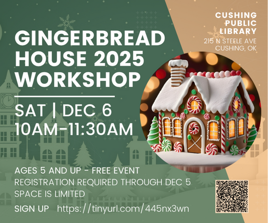 Cushing Public Library invites you to come decorate your own Gingerbread House at our Gingerbread House Workshop!