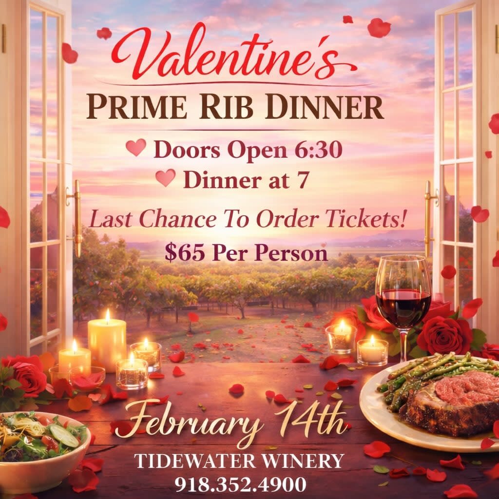 Tidewater Winery Valentine's Day Prime Rib Dinner